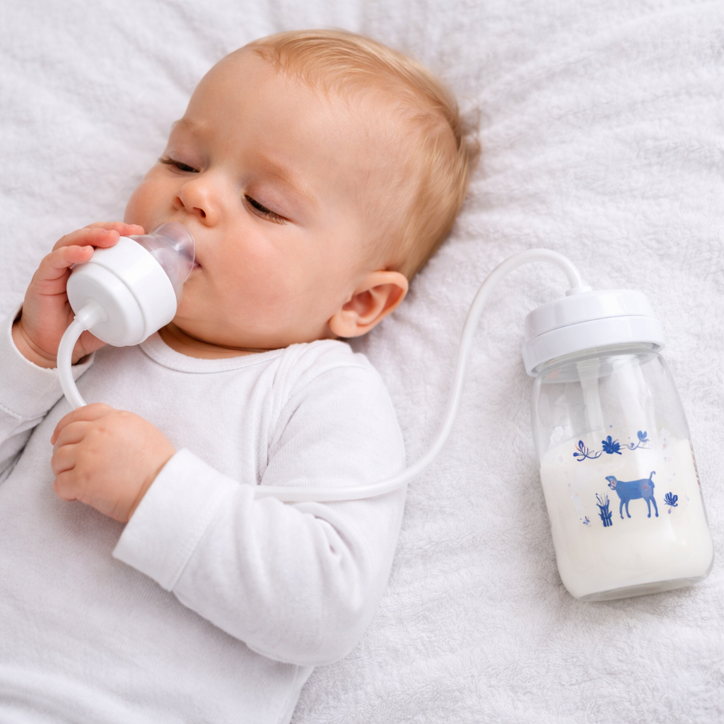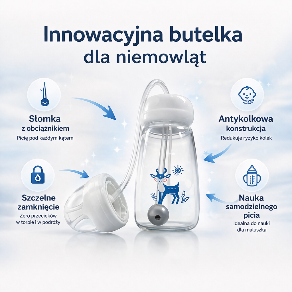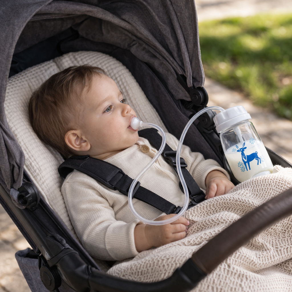Specjalna rurka z obciążnikiem sprawia, że mleko zawsze trafia do smoczka, dzięki czemu karmienie jest łatwiejsze i spokojniejsze.Po przygotowaniu butelki dziecko może pić w naturalnej pozycji, bez ciągłego poprawiania i bez przerywania karmienia.