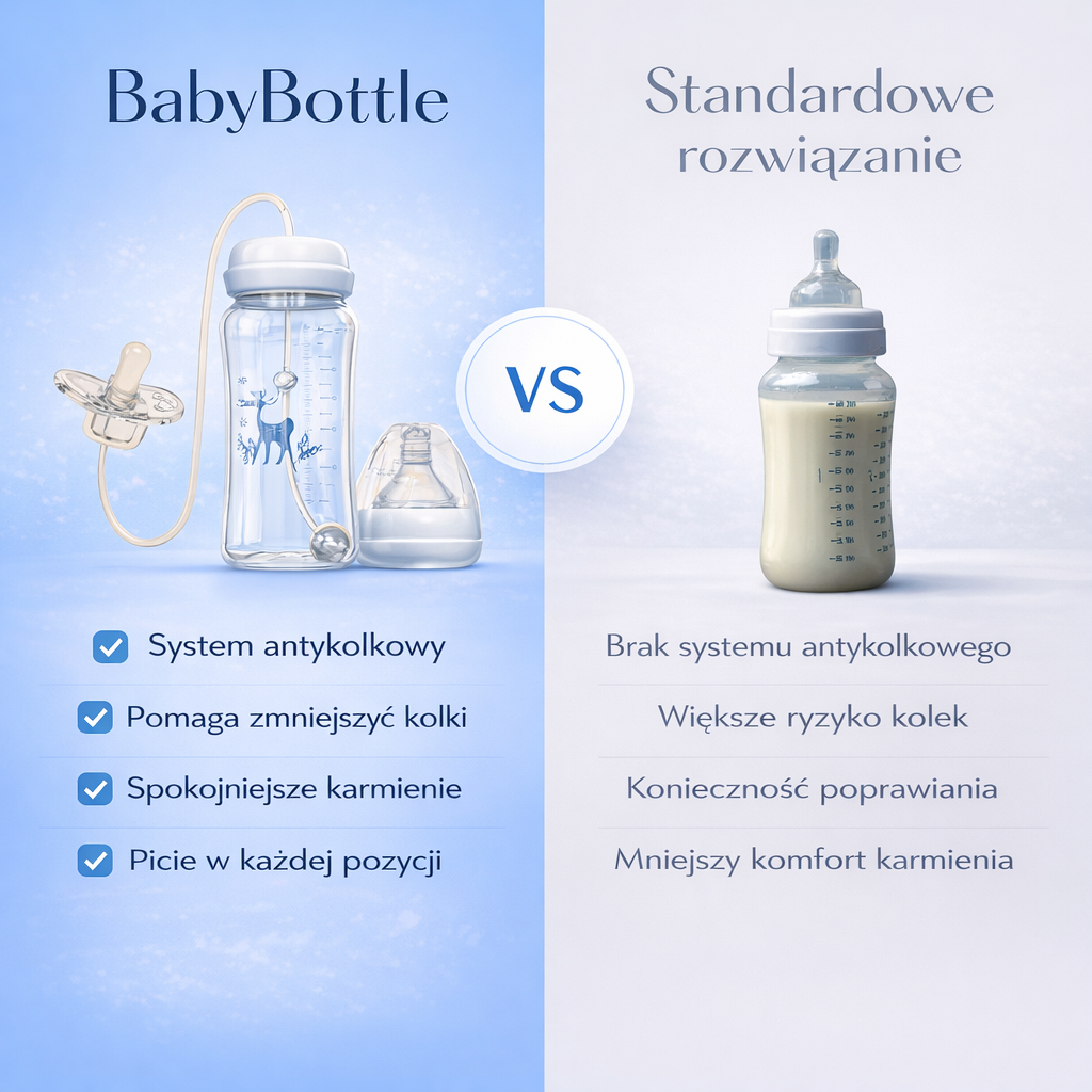 Specjalna konstrukcja ogranicza dostawanie się powietrza podczas picia, co może pomóc zmniejszyć ryzyko kolek i dyskomfortu po karmieniu.